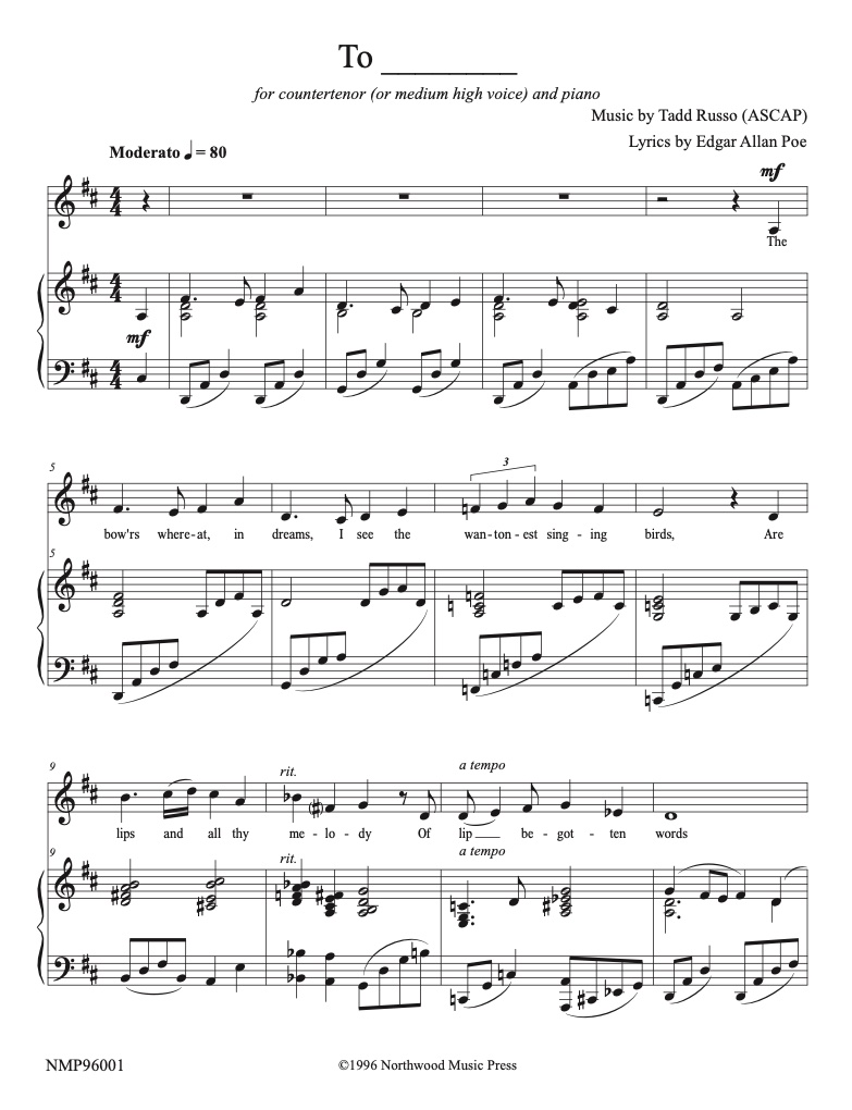 For SATB chorus and organ. From "The Sleeper" by Edgar Allan Poe.