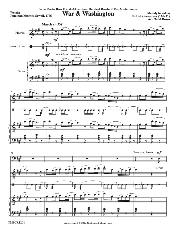 From the Chester River Choral Series. A song from the American Revolutionary War based on the tune "British Grenadiers."
